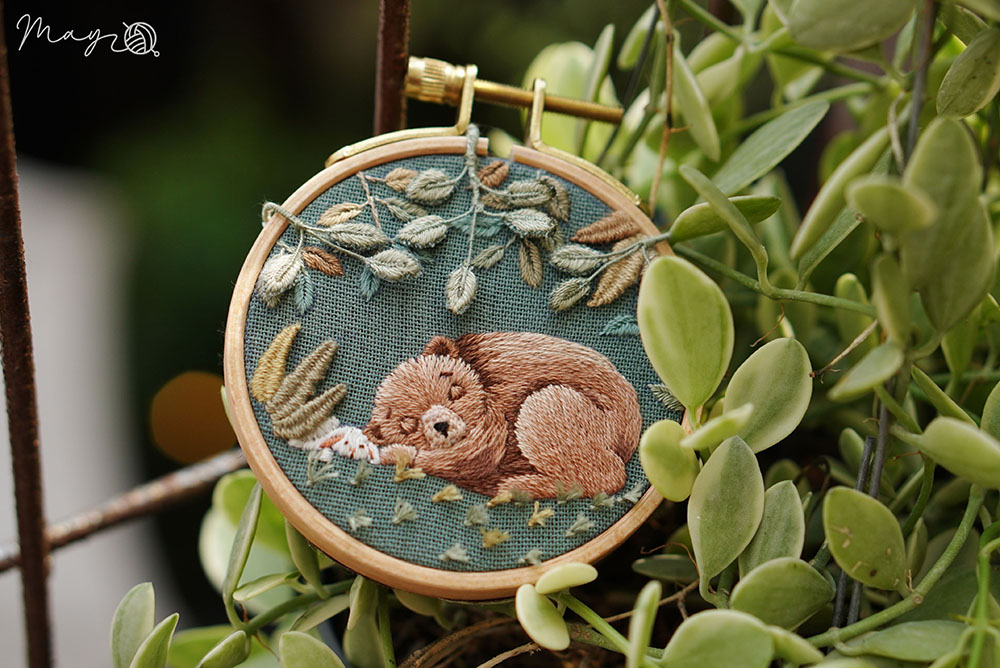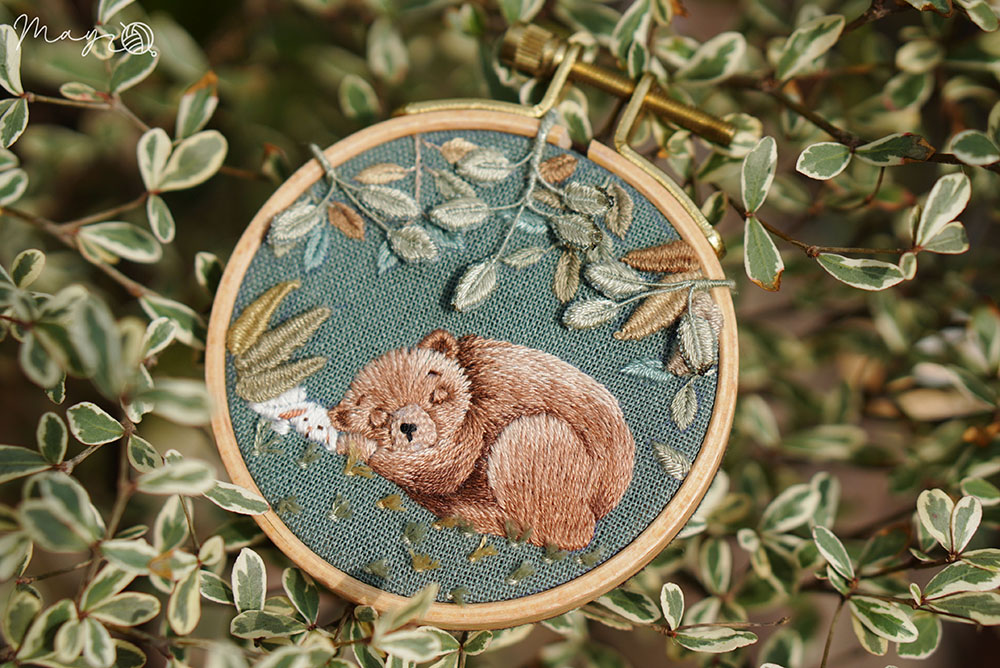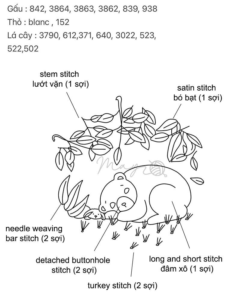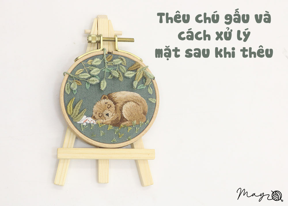 Thêu chú gấu nằm ngủ và cách xử lý mặt sau khi thêu (có mẫu in)