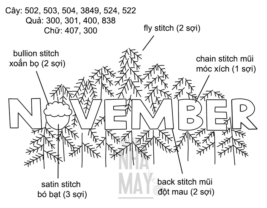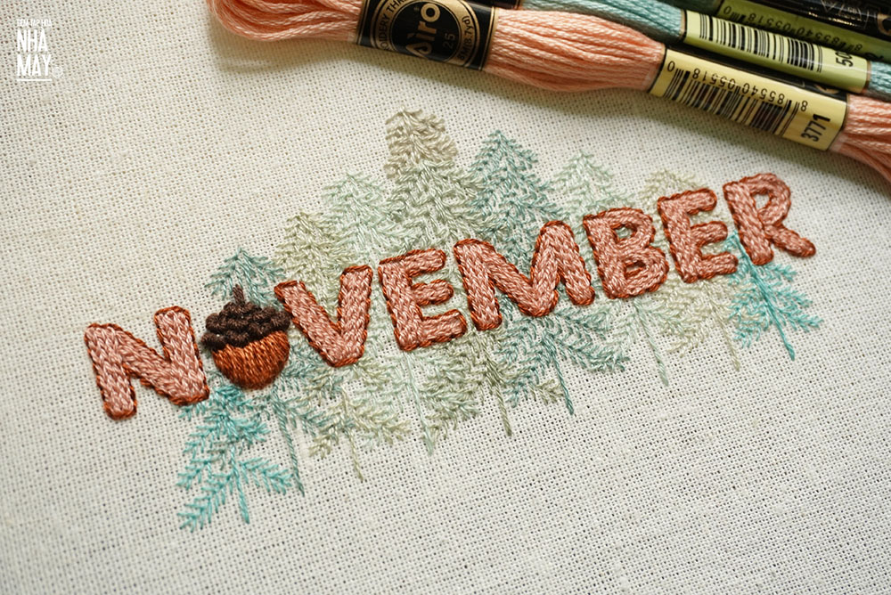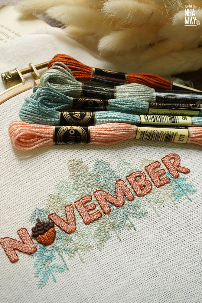 Thêu chữ November đón tháng 11 (có mẫu in)