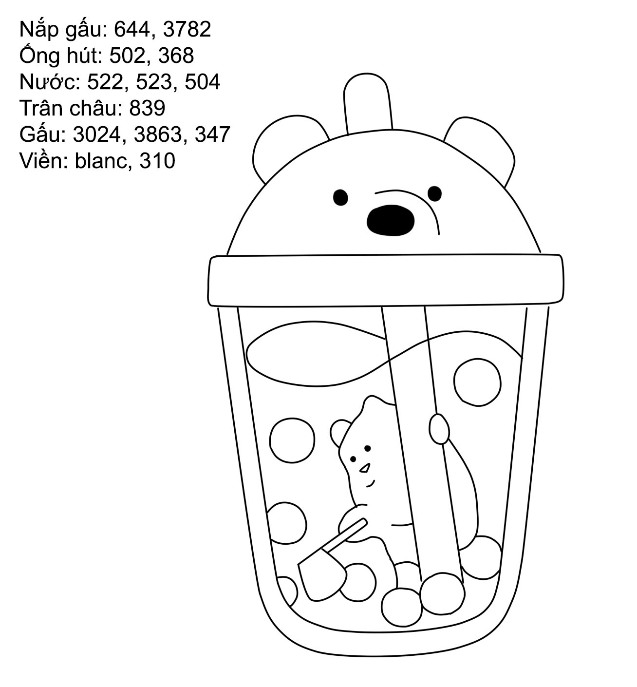 Thêu cốc trà sữa gấu trắng bằng kim Punch Needle với sợi chỉ thêu (có mẫu in)
