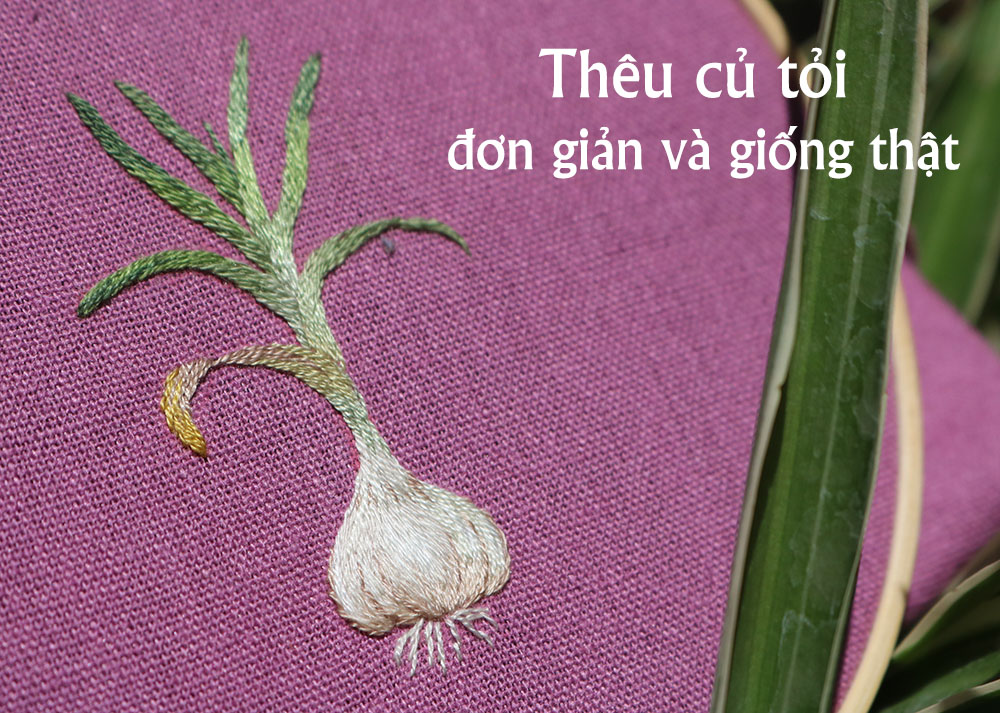 Góc bếp núc đảm đang: Thêu củ tỏi với mũi đâm xô đơn giản và giống thật.