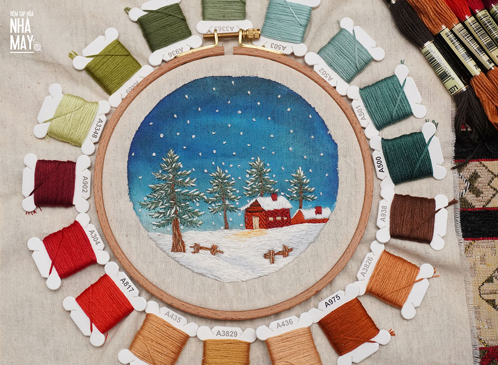 Thêu đêm Giáng sinh yên bình cùng tổ hợp mũi thêu cơ bản nhất (có mẫu in)