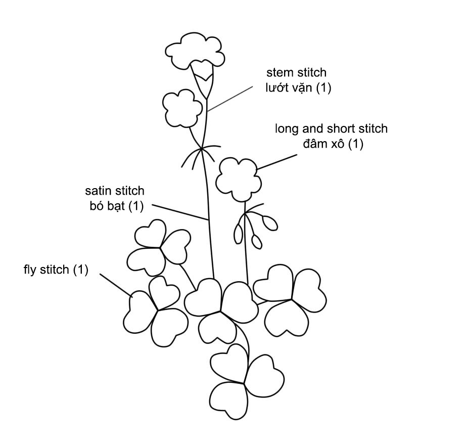 Học thêu cơ bản: Thêu hoa cây chua me đất (có mẫu in)