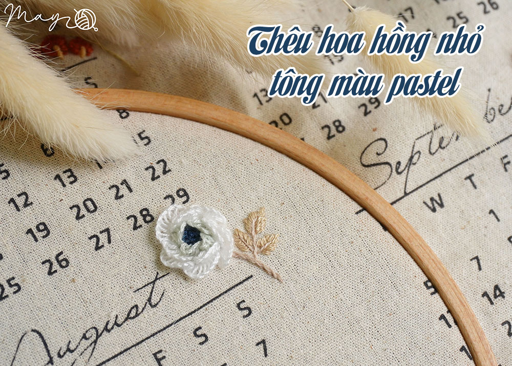 Thêu hoa hồng nhỏ tông màu pastel cho lịch vải (có mẫu in)