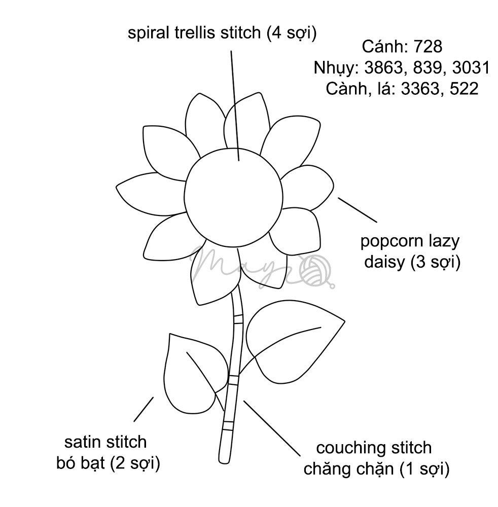 Thêu hoa hướng dương nhỏ xinh phiên bản "nâng cấp" (có mẫu in)