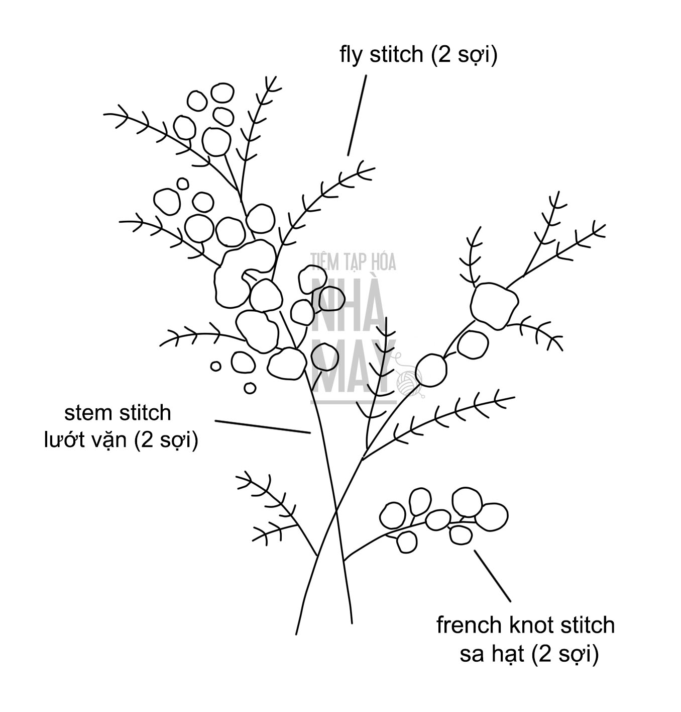 Thêu hoa Mimosa siêu dễ (có mẫu in)