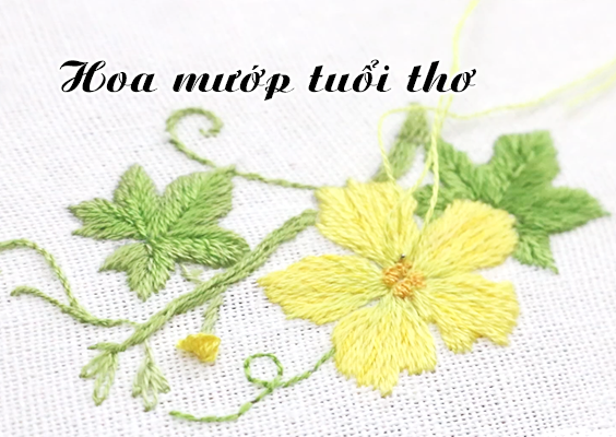 Thêu hoa mướp tuổi thơ bằng mũi đâm xô (có mẫu in)