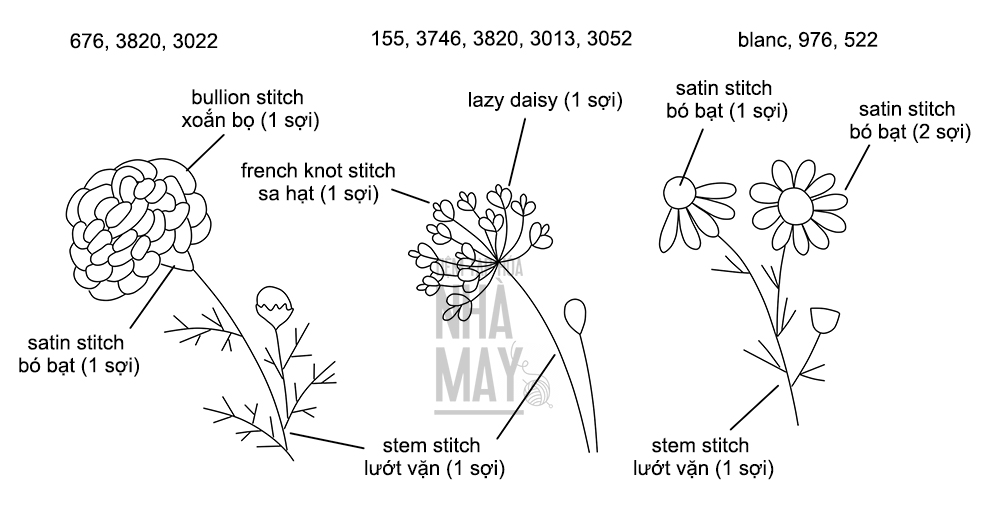 - Kim thêu: bạn xem các loại kim thêu tại đây nhé https://tiemtaphoanhamay.vn/kim-theu