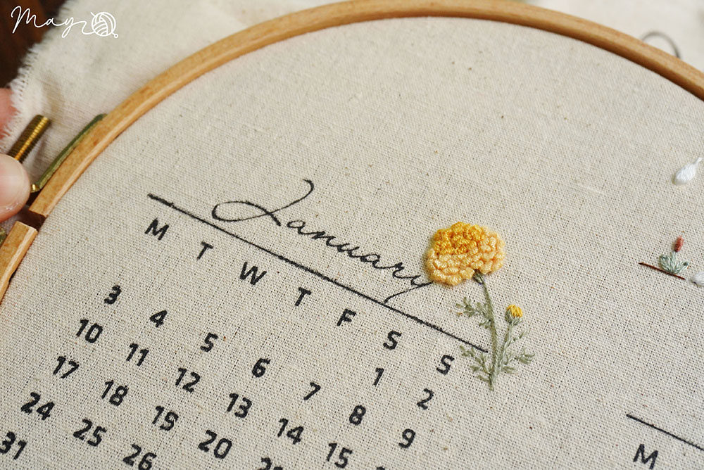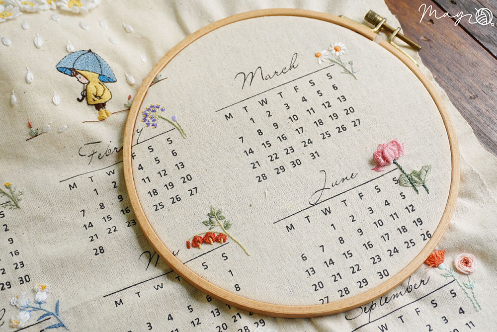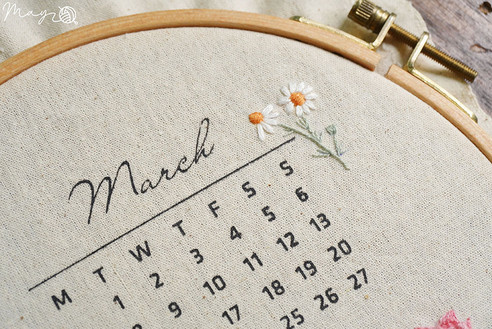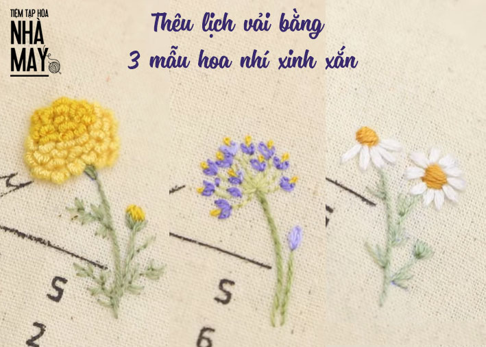 Thêu lịch vải bằng 3 mẫu hoa nhí xinh xắn (có mẫu in)