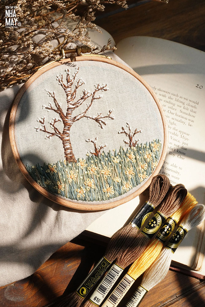 Được thêu chủ yếu bởi các mũi mà ai cũng biết như đột mau, straight stitch, sa hạt,...nhưng khu rừng nhỏ vẫn đủ cây, đủ hoa, vẫn đủ bình yên và nên thơ để các chị em tập thêu mà không bị nhàm chán.