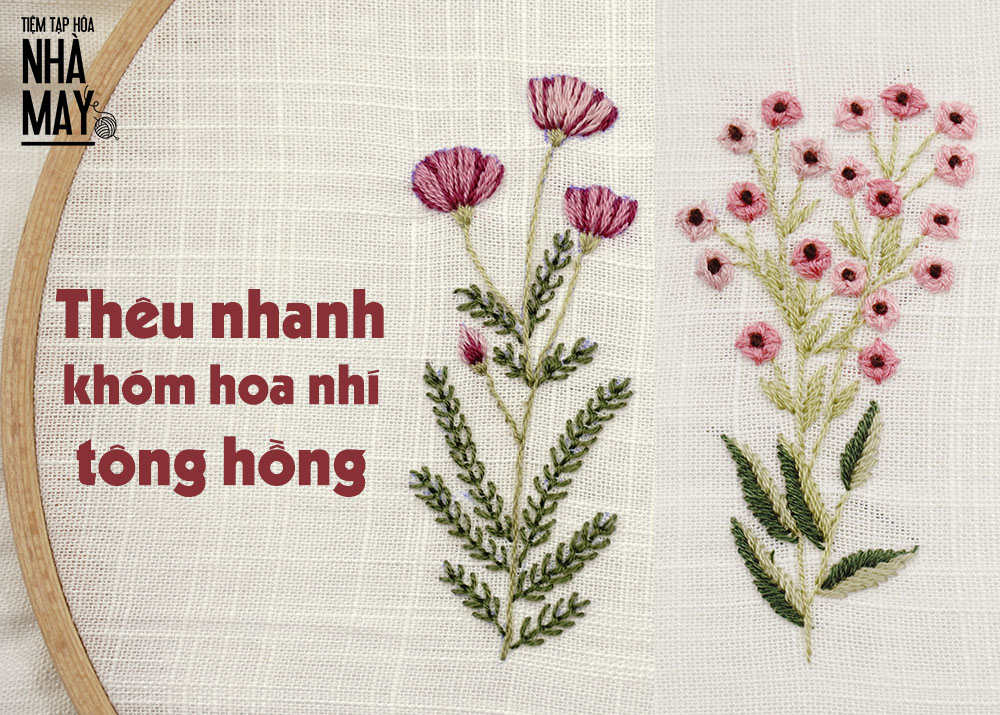 Người mới bắt đầu tập tành thêu hoa thì nên thêu hoa gì? Thêu nhanh khóm hoa nhí tông hồng với Tiệm nha.