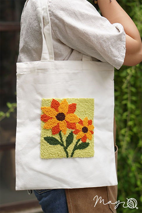 Thêu punch needle trên túi vải canvas (có mẫu in)