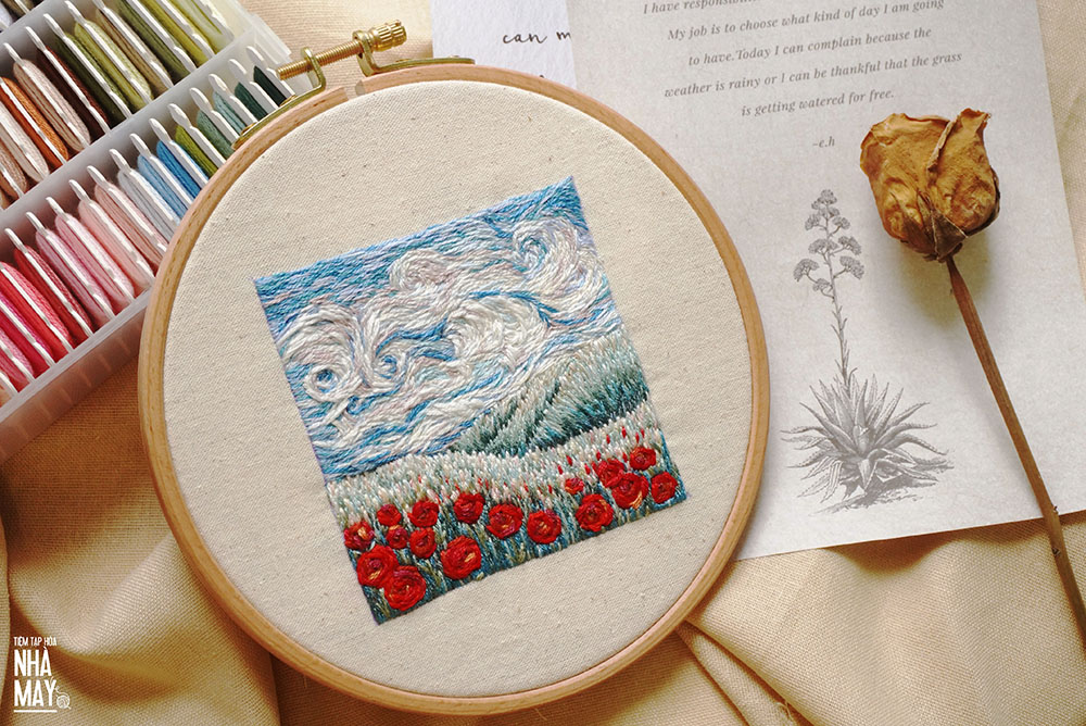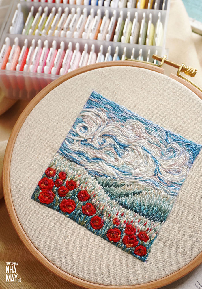 Nếu luyện thêu mãi chưa được mượt thì mau thử phong cách đi màu phóng khoáng của Vincent van Gogh. Tuy nói là phóng khoáng tự do nhưng không có nghĩa là đi màu ngẫu hứng, vẫn cầng những đường đi có sắp đặt nhé mọi người. Video nhanh thuật lại toàn bộ quá trình thêu của Tiệm hy vọng có ích cho mọi người.