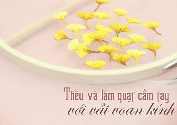 Thêu và làm quạt cầm tay với vải voan kính