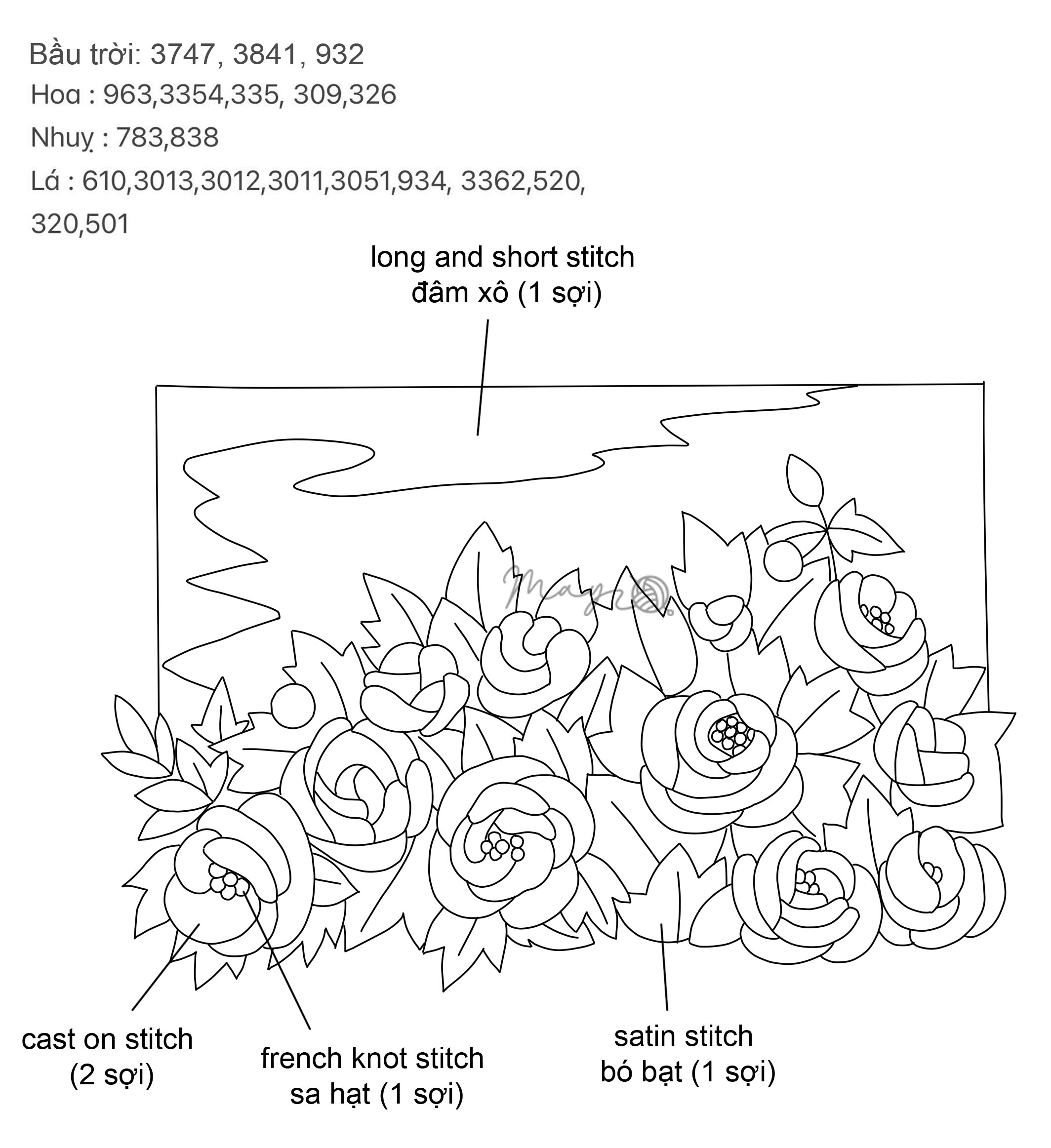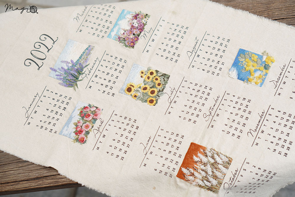 Thêu vườn hoa hồng cho Tháng 4 lịch vải (có mẫu in)