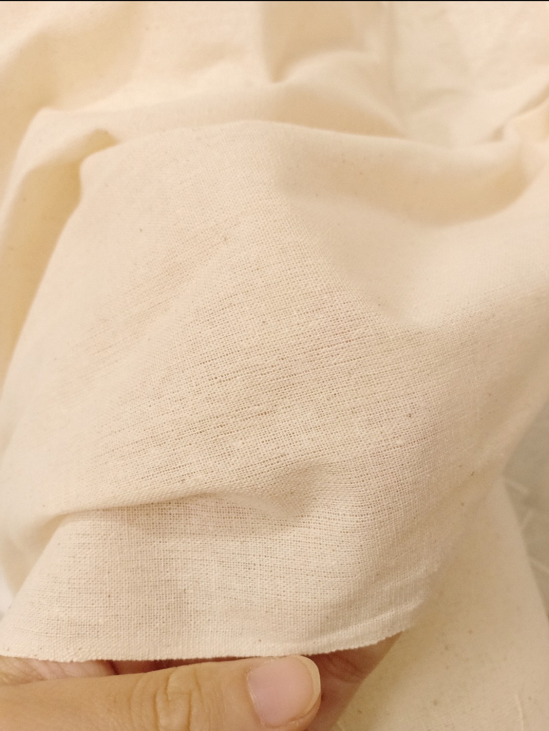 Chất vải thô mỏng, hơi thô ráp, sợi vải thưa, phù hợp để tập thêu dành cho người mới tập.