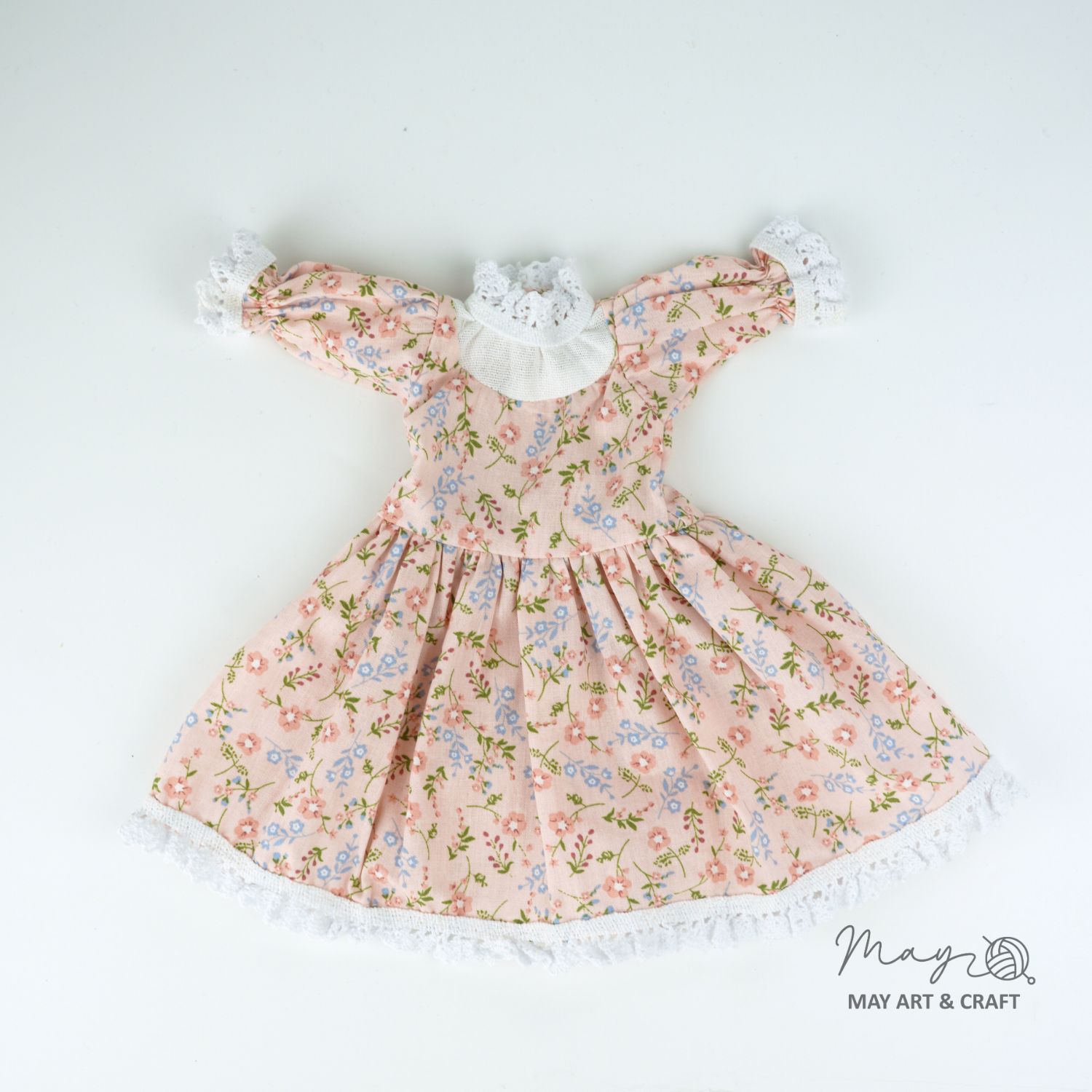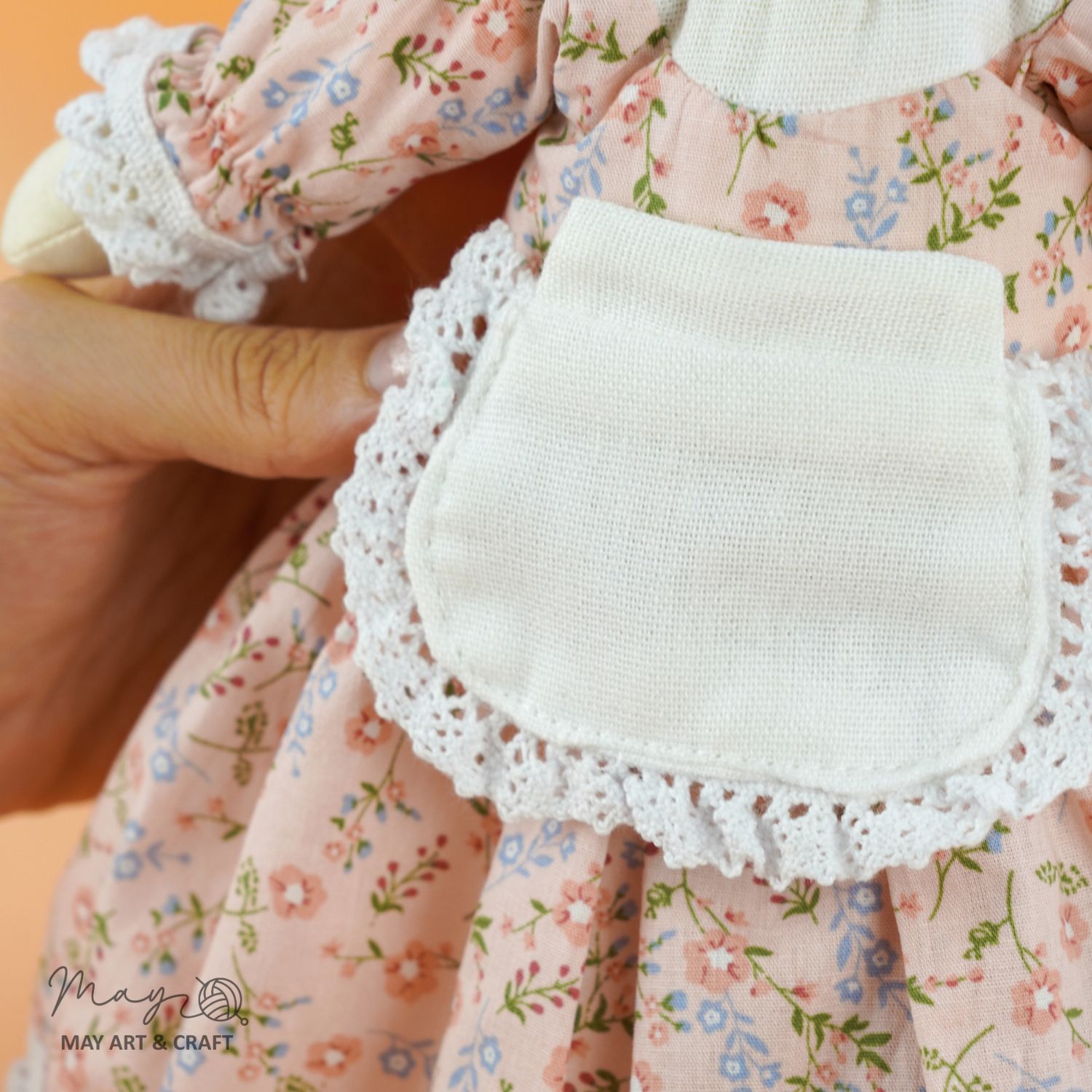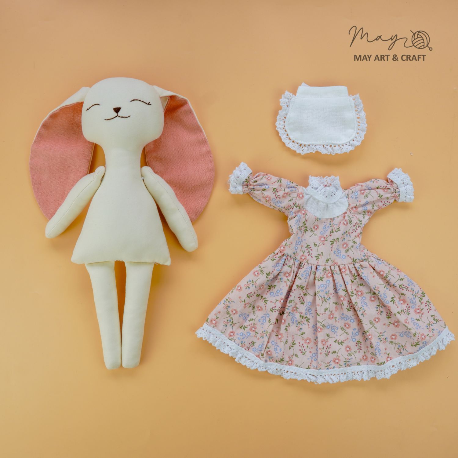 Sản phẩm nằm trong bộ sưu tập thú bông vải của Tiệm tạp hoá nhà May. Phôi thú bông được may từ vải kaki cao cấp nhồi bông sợi không gây dị ứng, có kích thước khoảng 30cm, váy và yếm được may bằng vải thô, phối ren điệu đà, vừa vặn với phôi.