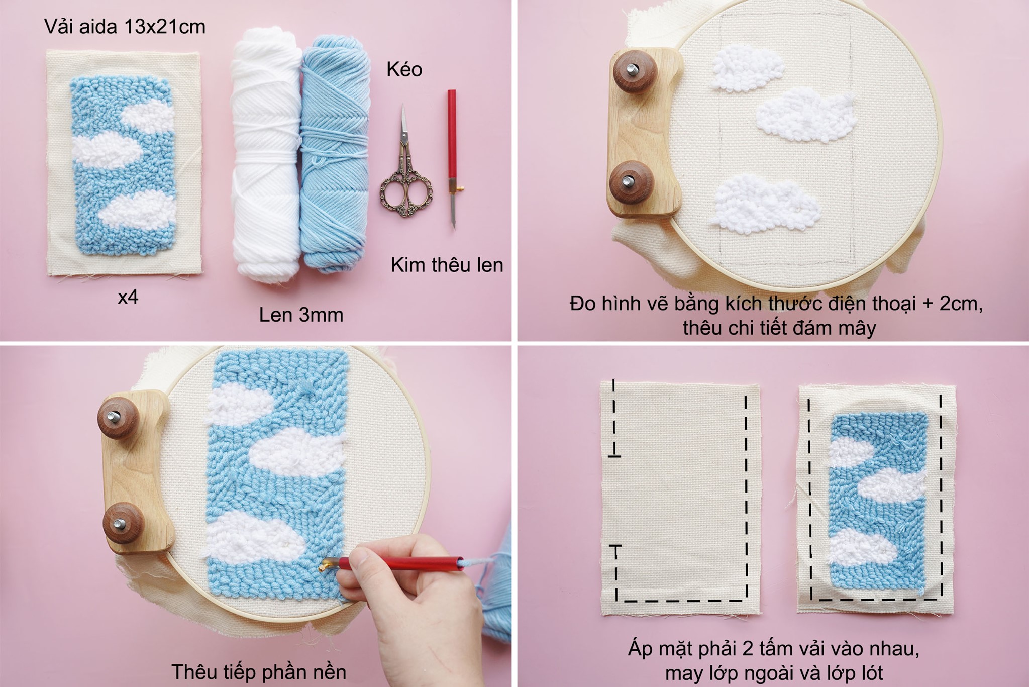 Thử làm túi đựng điện thoại đơn giản bằng punch needle