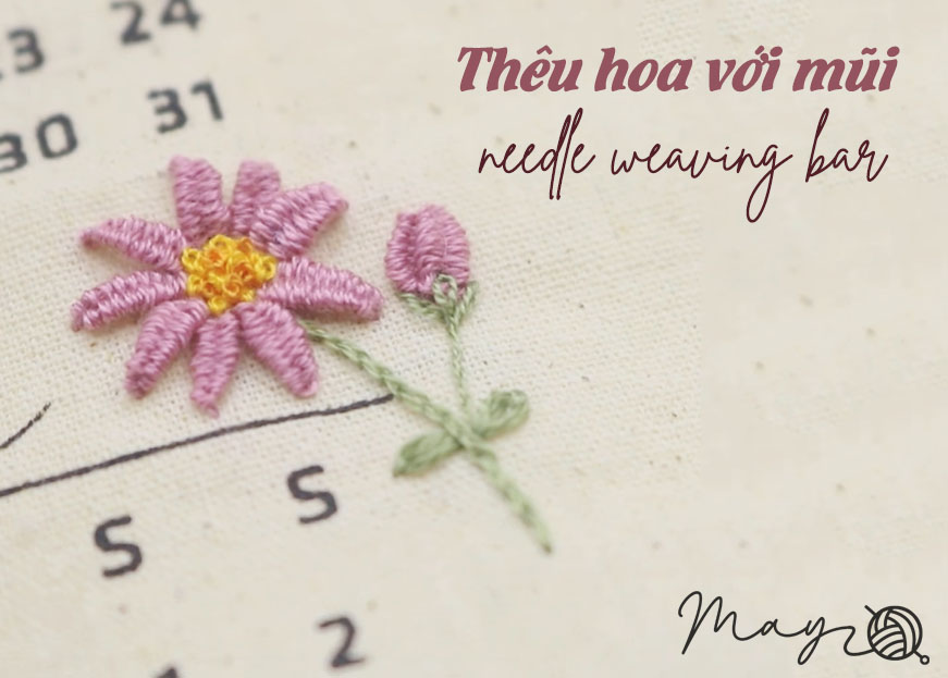 Thực hành thêu hoa bé lạ mắt với mũi needle weaving bar.