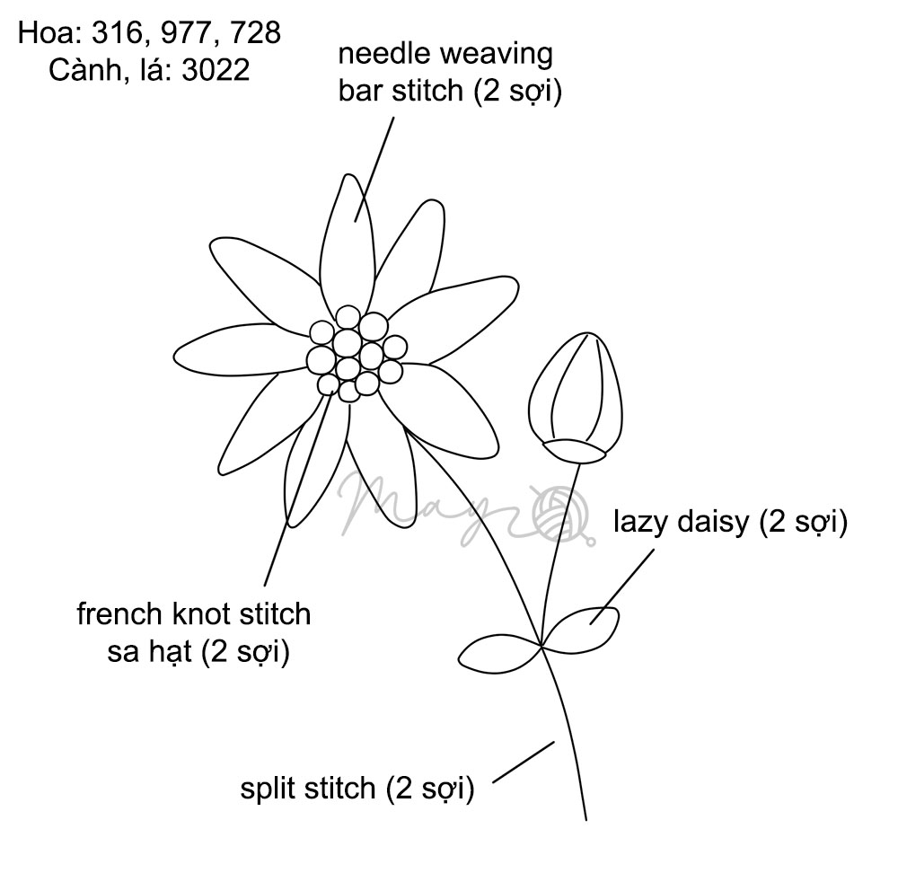 Thực hành thêu hoa nhí lạ mắt với mũi needle weaving bar (có mẫu in)