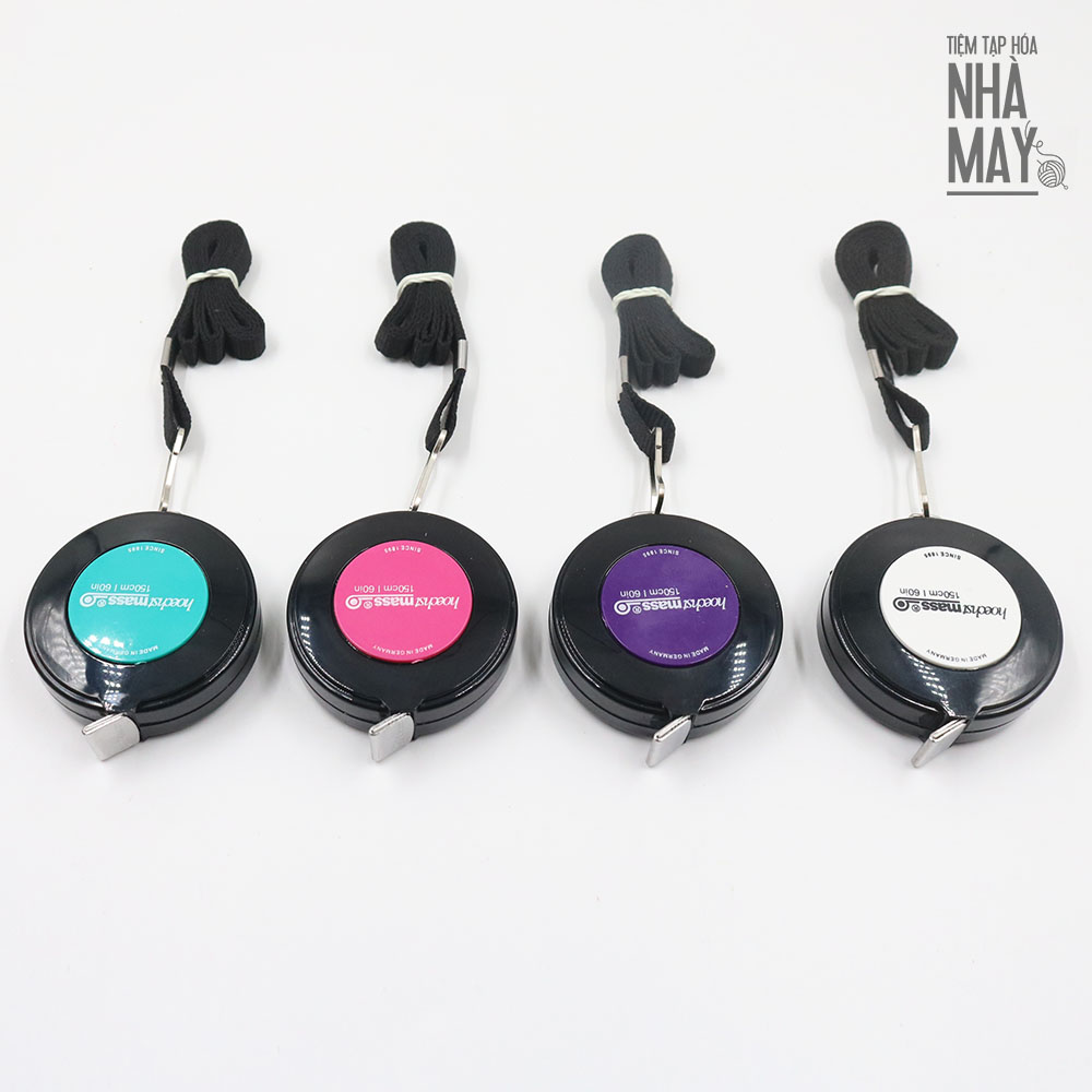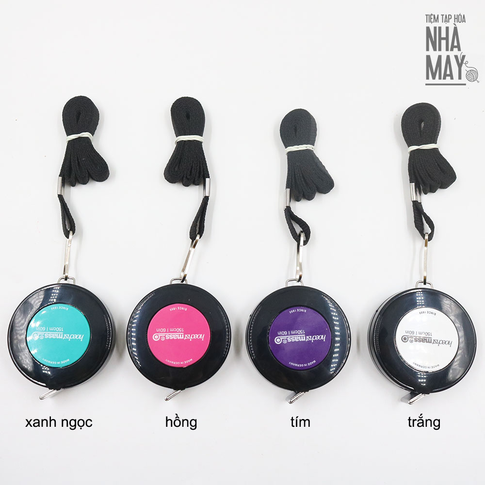 Thước dây cuộn được thiết kế dạng hộp đựng bằng nhựa có đường kính 5.5cm, kèm móc dây dù dài 45cm tiện lợi.