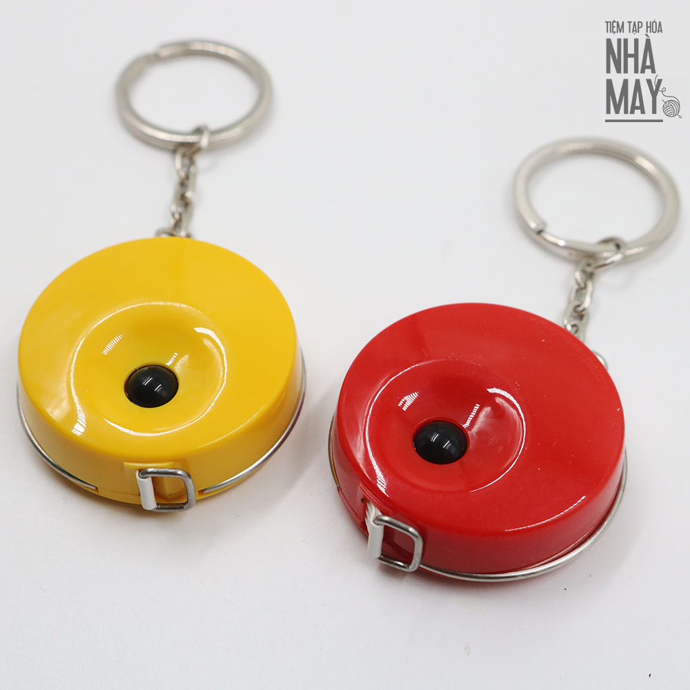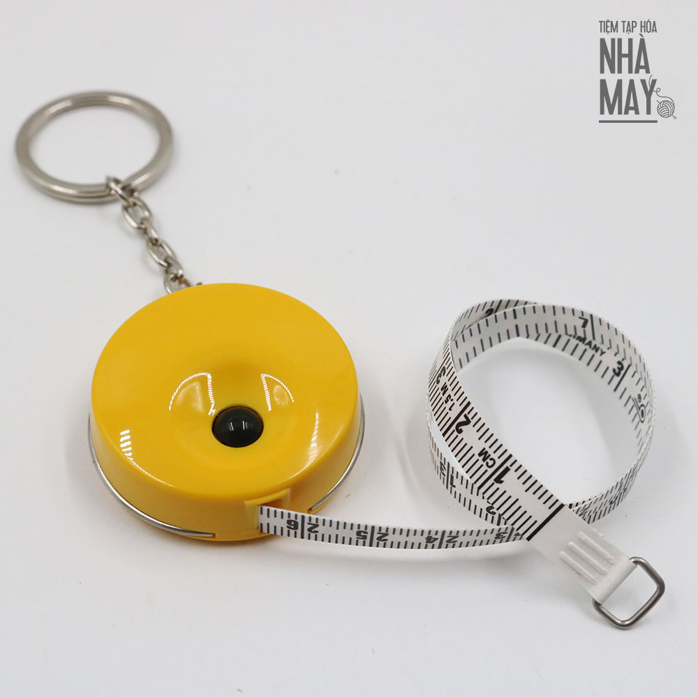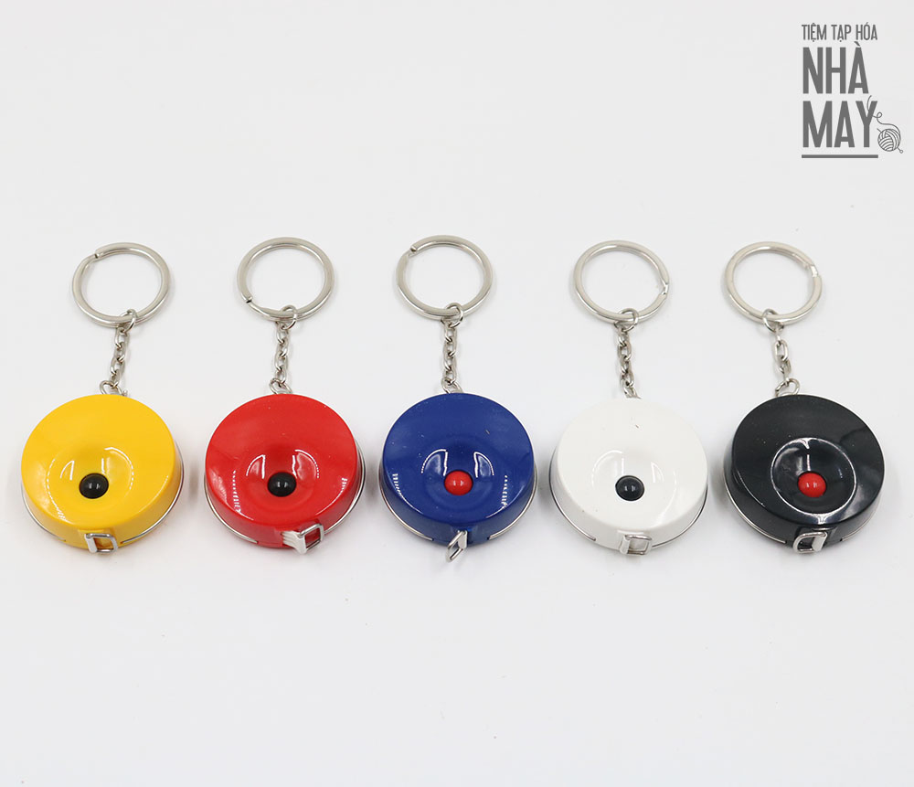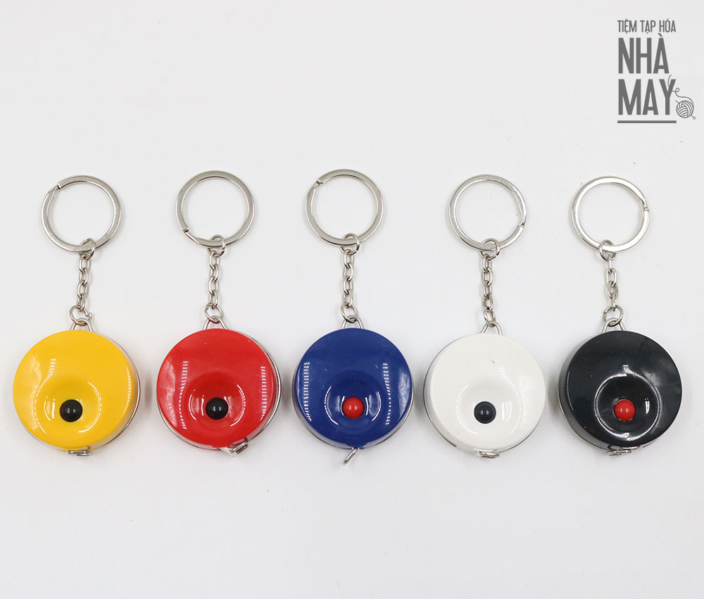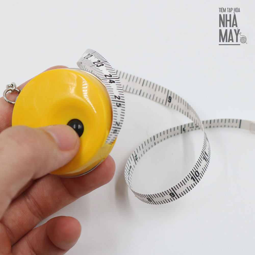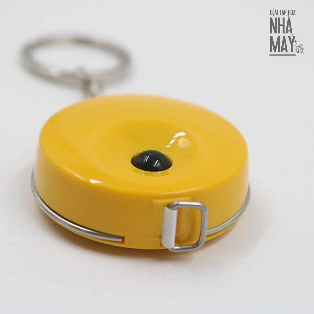 Thước dây cuộn được thiết kế dạng hộp đựng bằng nhựa có đường kính 4cm, kèm móc chìa khóa tiện lợi.