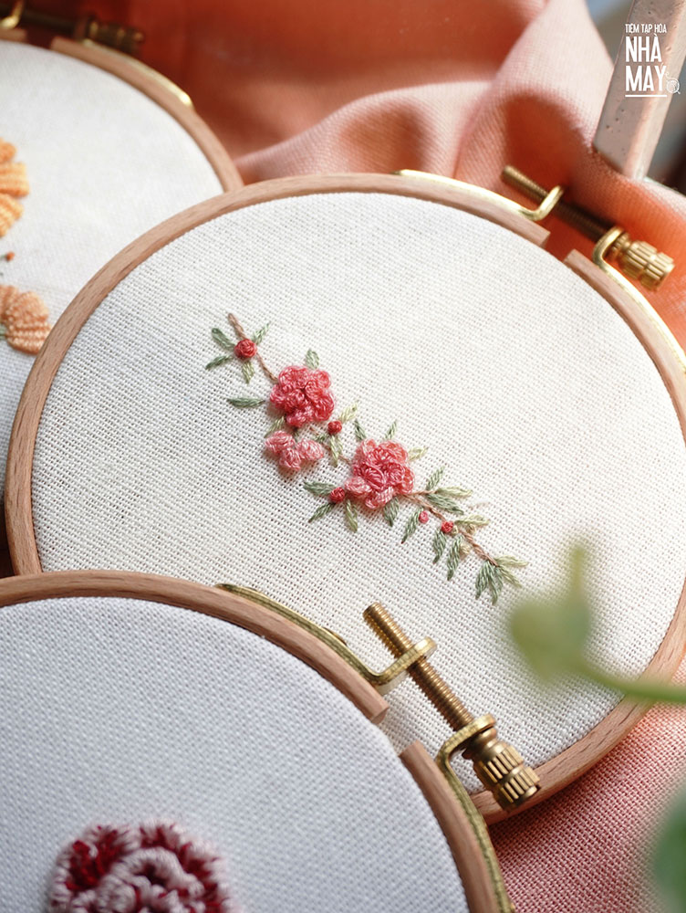- Khung thêu: khung thêu gồm 3 loại chính: khung thêu tre, khung thêu nhựa và khung thêu gỗ. Bạn xem ở đây nhé https://tiemtaphoanhamay.vn/khung-theu
