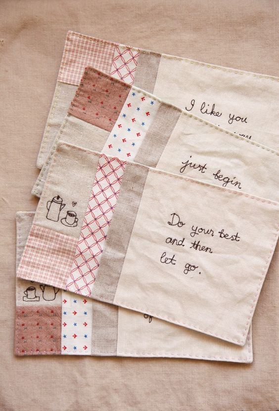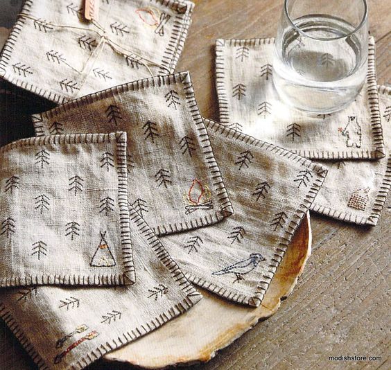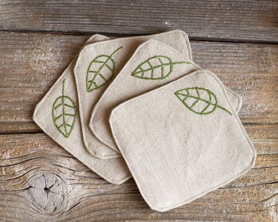 - Vải: Mềm mại và dễ thêu, vải linen và thô cotton trơn là 2 loại vải bạn có thể lựa chọn làm những chiếc lót ly xinh xắn. Ngoài ra bạn cũng có thể sử dụng vải canvas xước hoặc canvas họa tiết tùy theo sở thích. Xem các loại vải tại đây nha