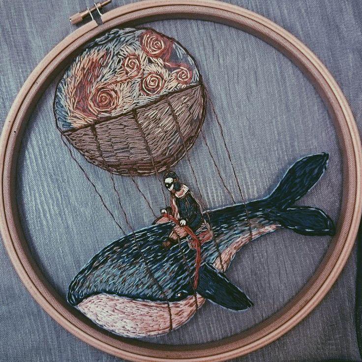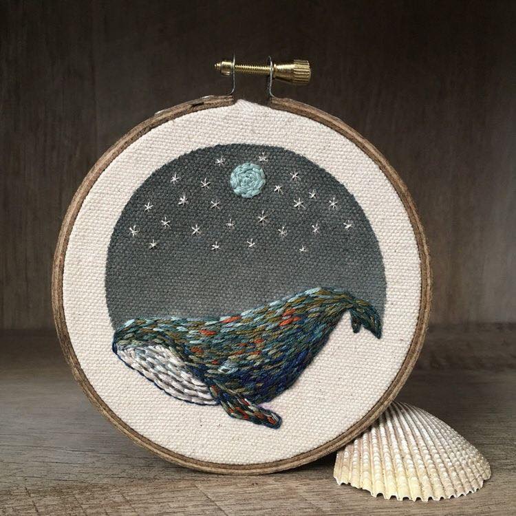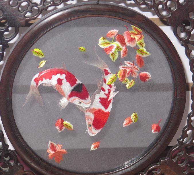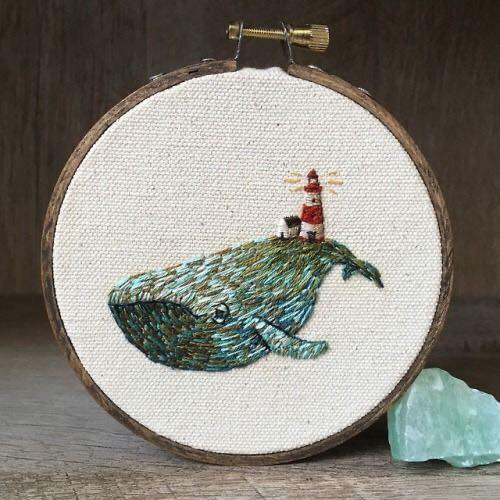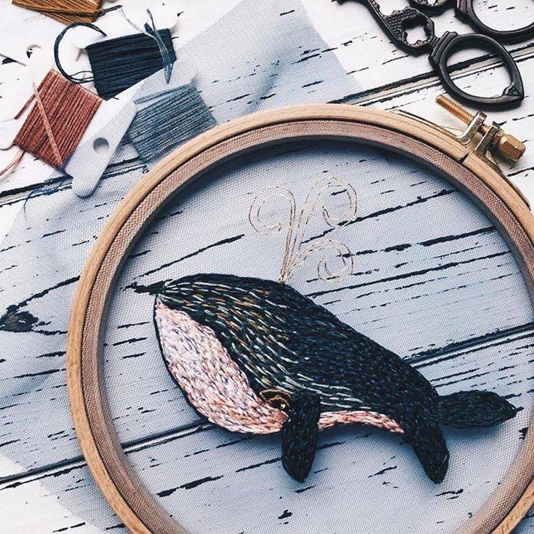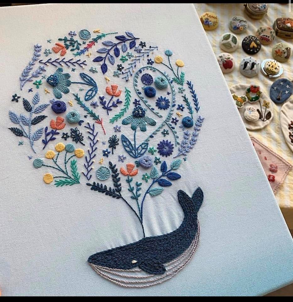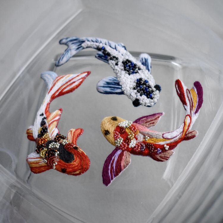 Thêu cây cỏ hoa lá, muông thú chán rồi thì mình chuyển qua sinh vật dưới biển thôi nhỉ? Thêu cá cũng có nhiều mẫu xinh lắm, có thể thêu trên cả vải voan kính để tạo cảm giác trong suốt như nước trong bể cá nữa.