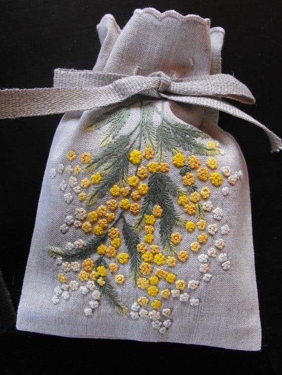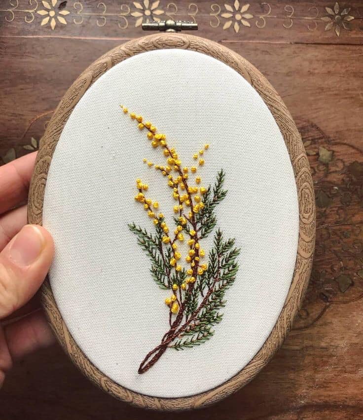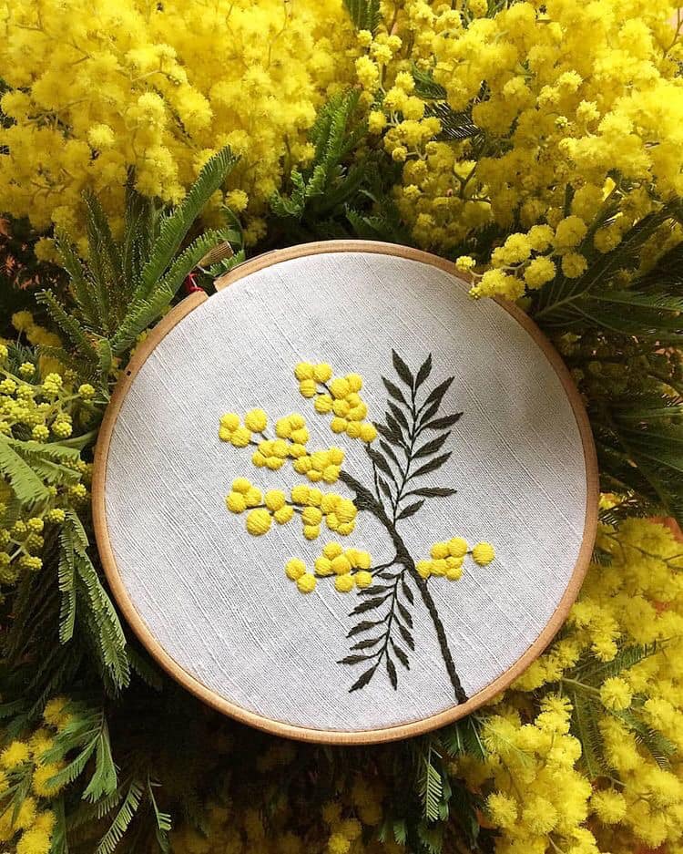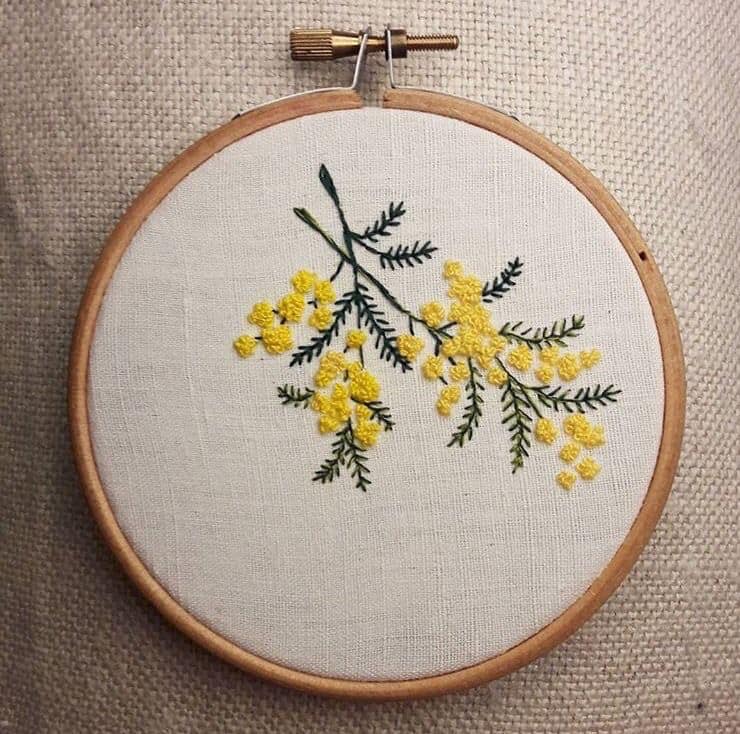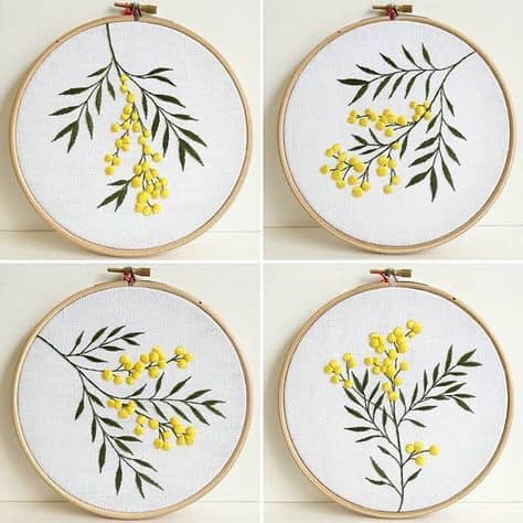 Tổng hợp mẫu thêu hoa mimosa và ứng dụng