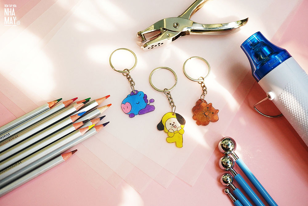 3. Bộ bút chì màu: với 12 màu cơ bản là đủ để vẽ những chiếc móc khóa cute rồi! Màu chì có độ bám tốt trên miếng nhựa mài thô, khi co lại màu sẽ không bị trôi hay bị bột, tuy nhiên sẽ đậm hơn so với ban đầu. Cần chú ý khi tô màu để lúc co lại không quá đậm.
