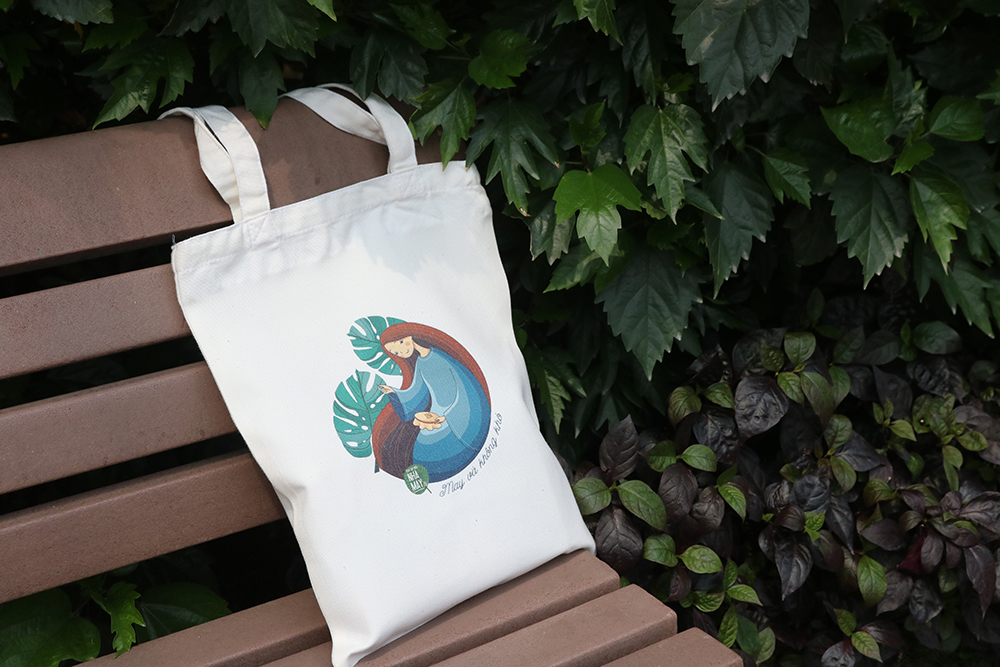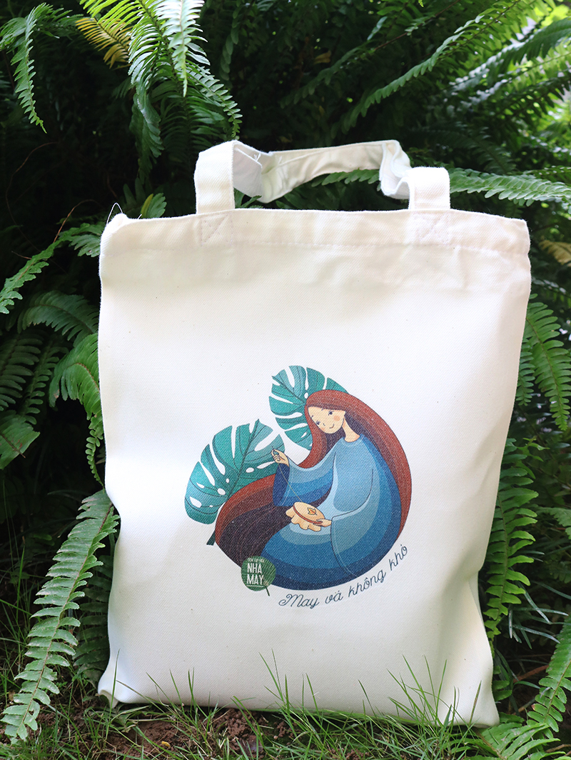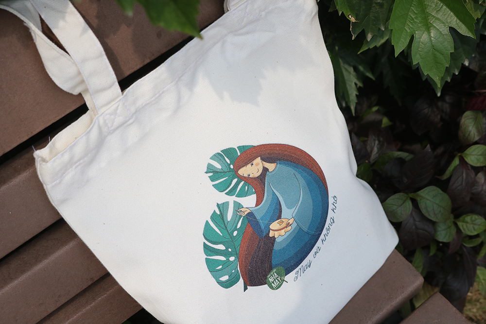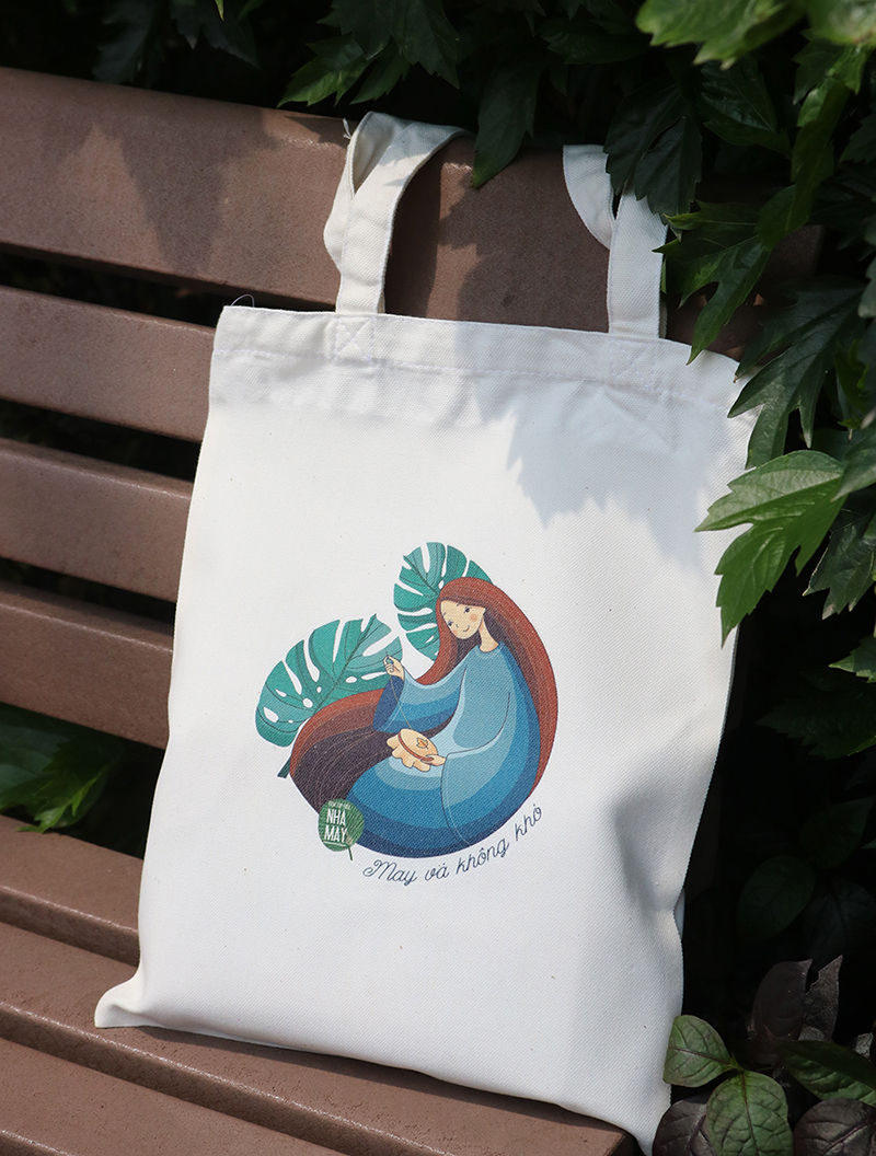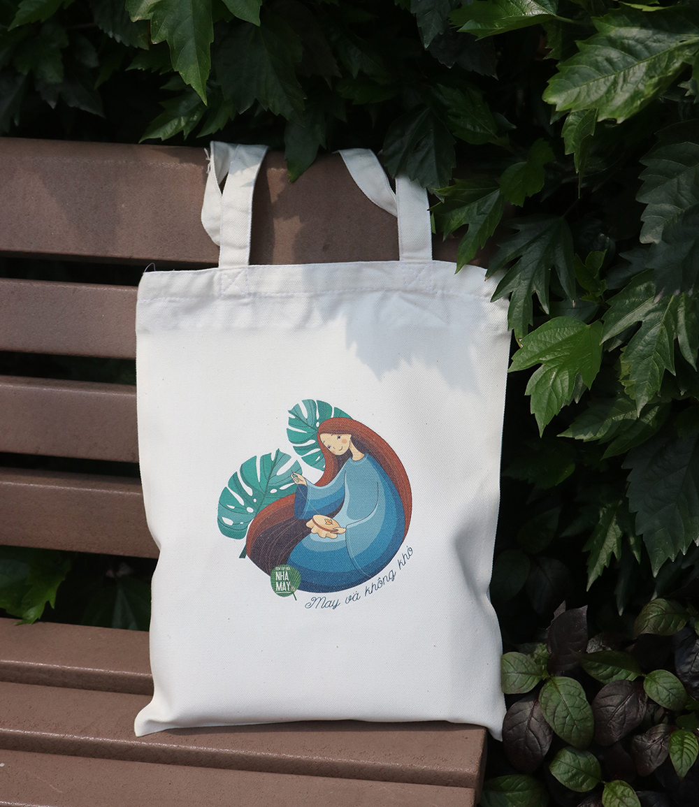 Túi tote vải màu trắng 1 lớp, chất vải mịn và chắc chắn.