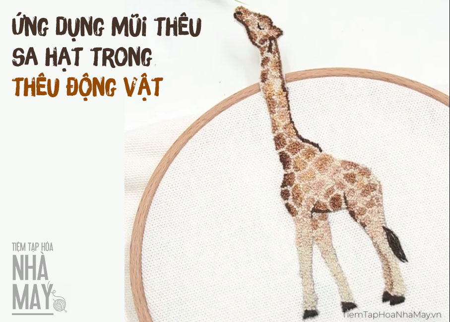 Ứng dụng mũi thêu sa hạt trong thêu động vật - hươu cao cổ (có mẫu in)