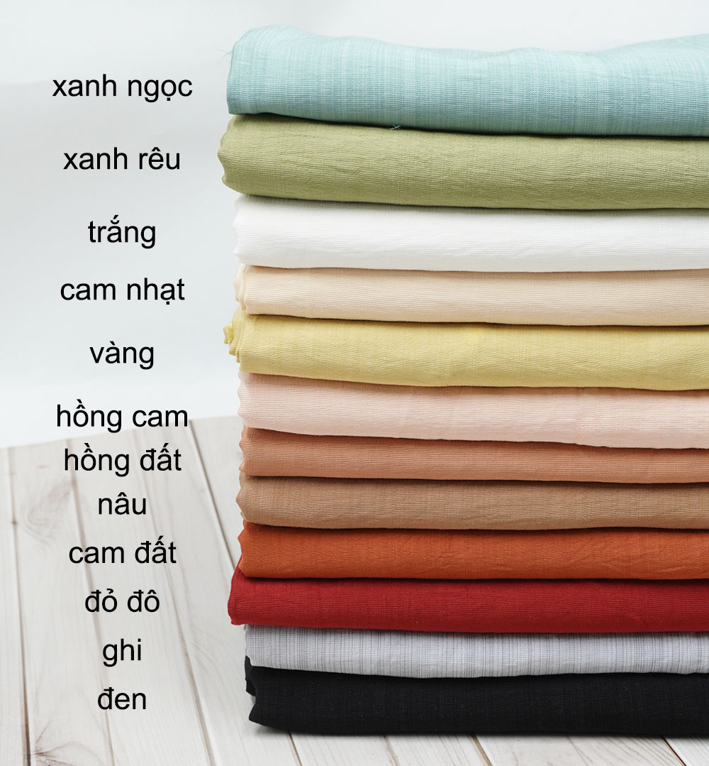 Vải đũi trơn chất liệu cotton pha polyester, có độ mềm nhưng không quá nhũn, bề mặt có độ bóng vừa phải, vải mượt, mềm và mát.