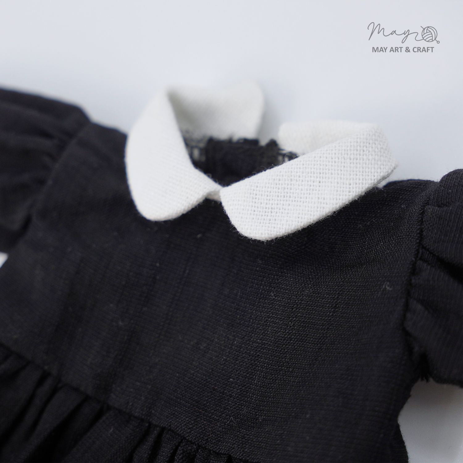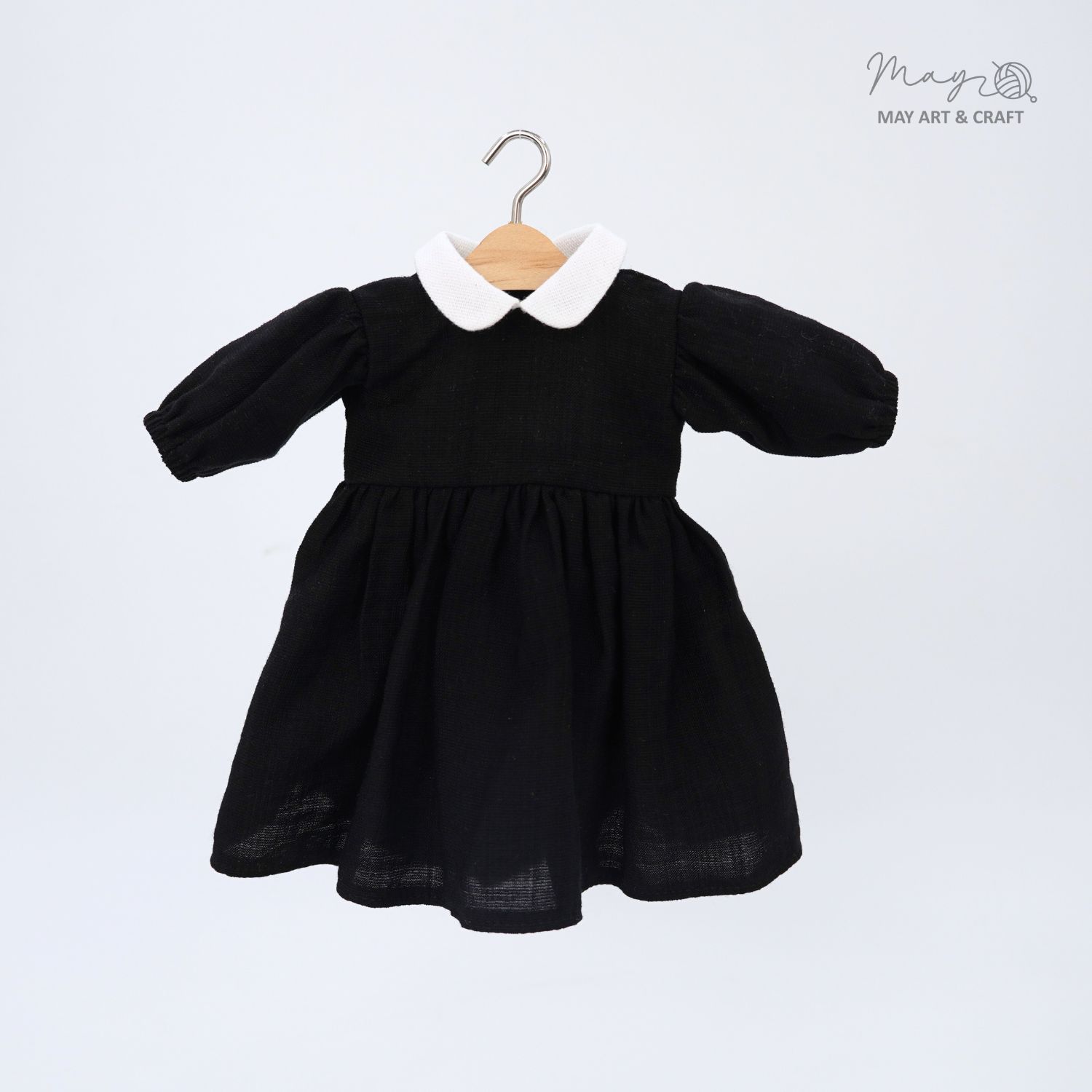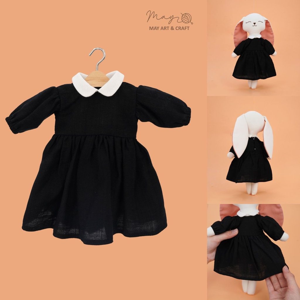 Váy xòe cổ sen là trang phục được Tiệm tạp hoá nhà May thiết kế may đo riêng cho các loại phôi thú bông của Tiệm. Váy được may từ vải đũi mềm phối linen. Thiết kế form xoè rộng, cổ sen.