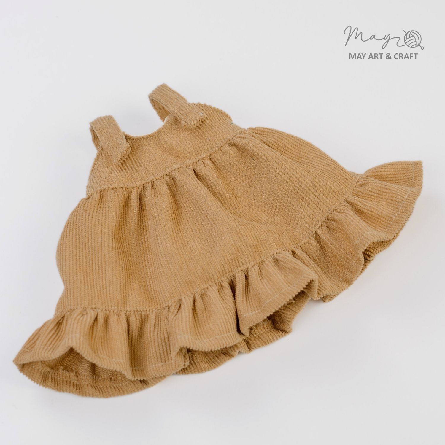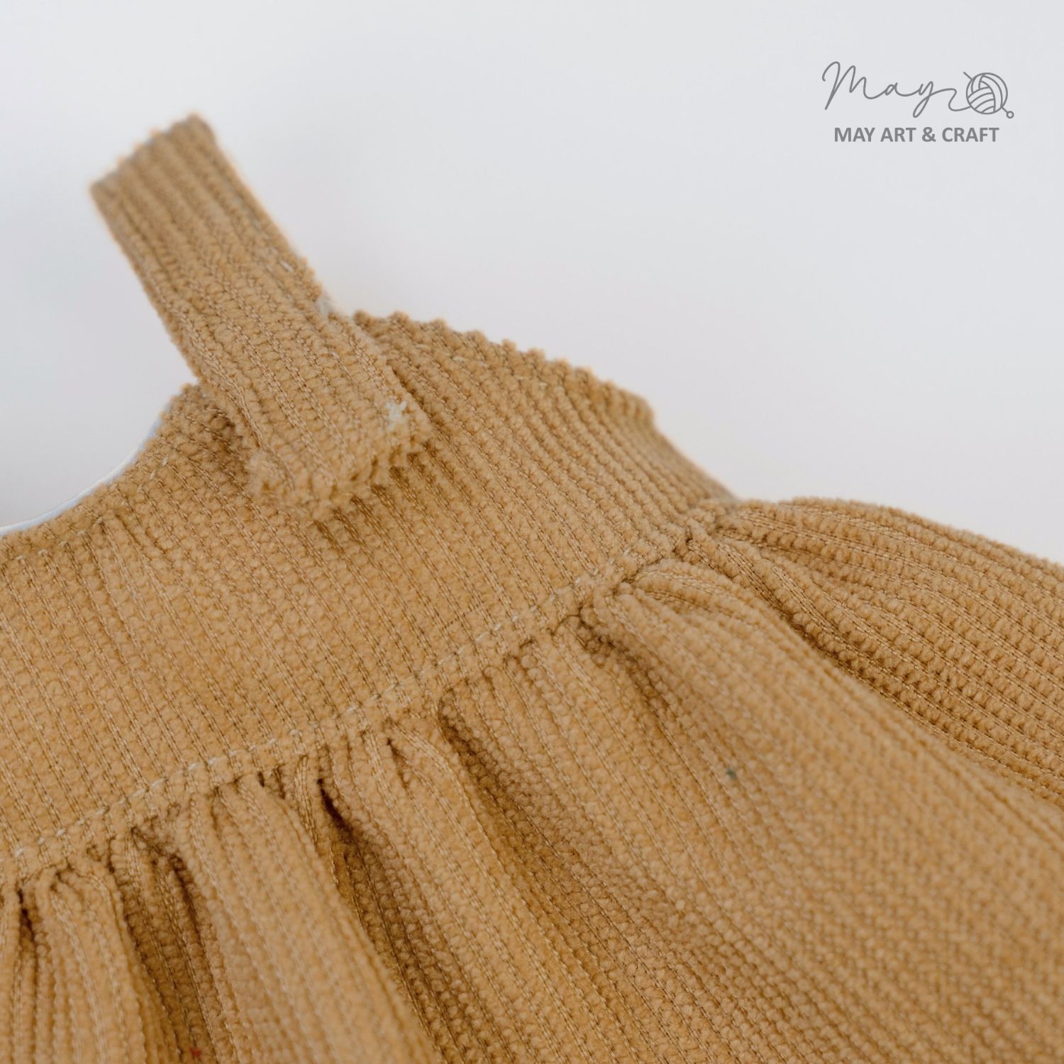 Váy yếm xoè nâu nhạt nằm trong BST trang phục cho thú bông vải của Tiệm tạp hoá Nhà May