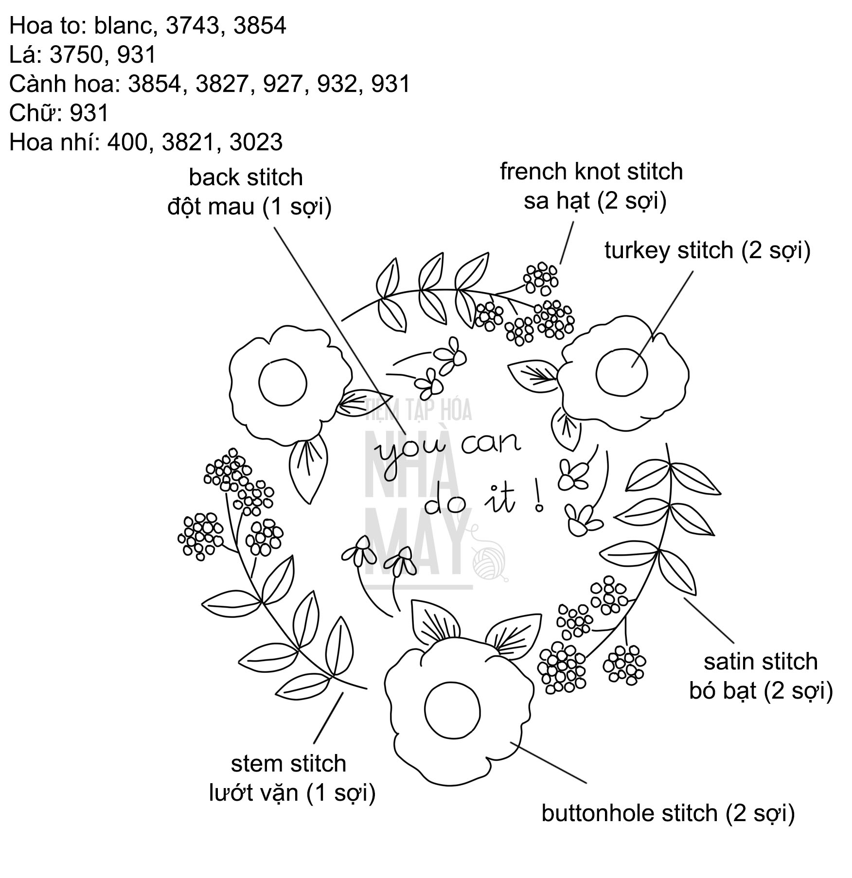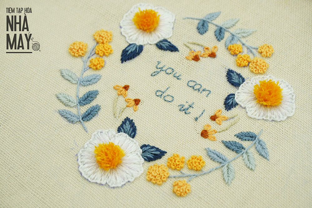 Thêu 1 chiếc vòng hoa cổ vũ cho những ai đang phải chiến đấu trên bất cứ mặt trận nào. You can do it! We can do it! Cố lên nào!