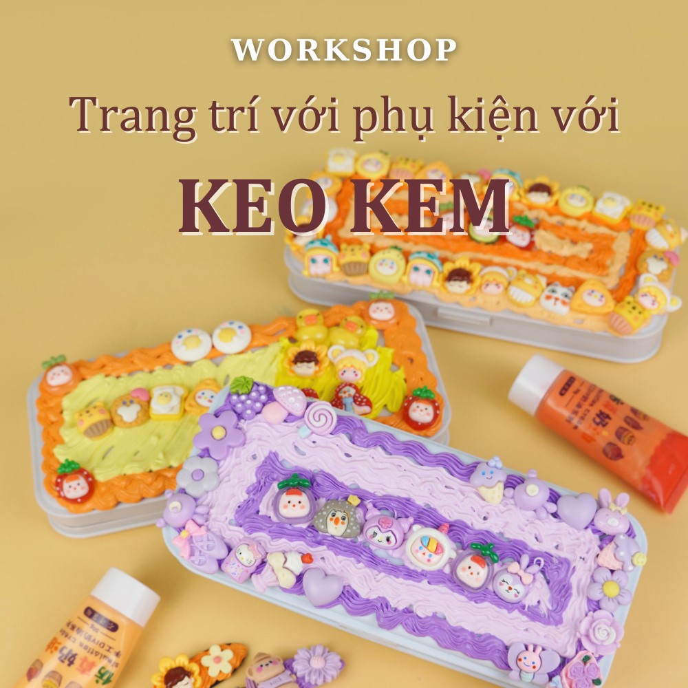 Kem keo là loại keo khi phun ra giống như lớp kem tươi và để lâu sẽ đông cứng lại. Kem keo rất đa dạng về màu sắc và mẫu mã, có thể kể đến một số loại kem keo phổ biến như dạng đặc, trong suốt, kim tuyến lấp lánh... giúp cho sản phẩm như có độ bồng bềnh, tơi xốp, tạo vẻ đáng yêu. Sản phẩm này thường được dùng để trang trí ốp điện thoại, móc khóa, hộp bút...