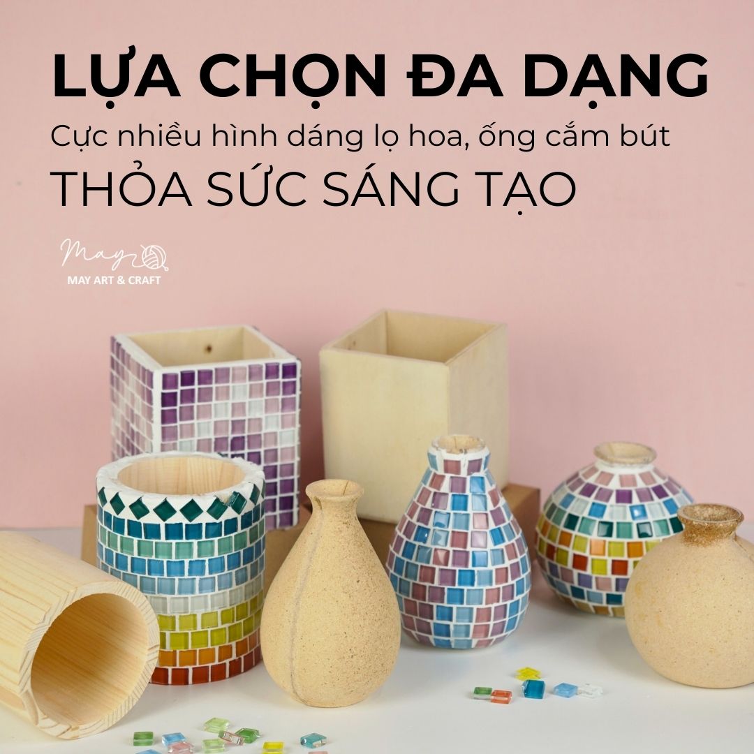 Bạn có thể tự tay tạo ra một bình hoa bình nhất vô nhị của riêng mình theo cách mới lạ và an toàn theo các gam màu đỏ- xanh - vàng với Bộ nguyên liệu khảm đá nghệ thuật Mosaic 3D.