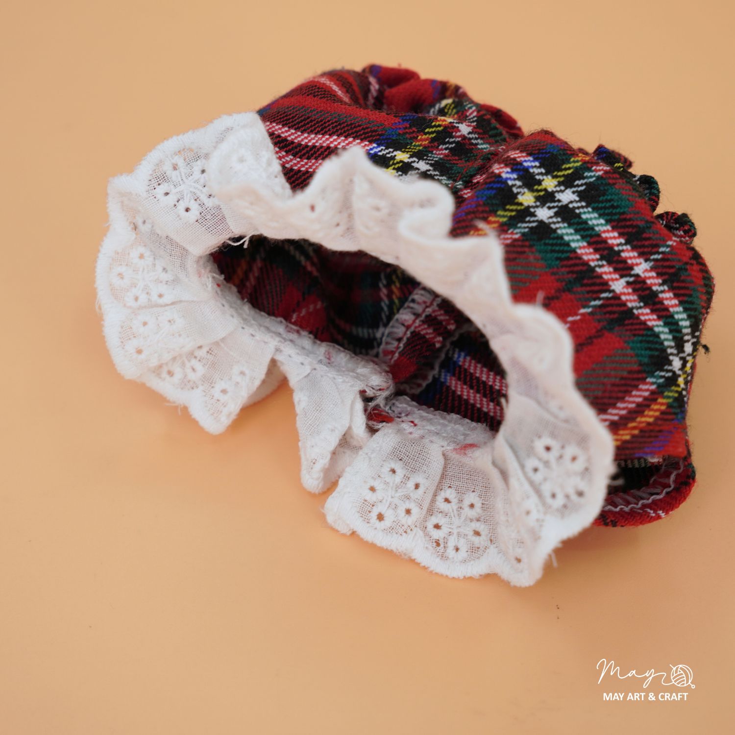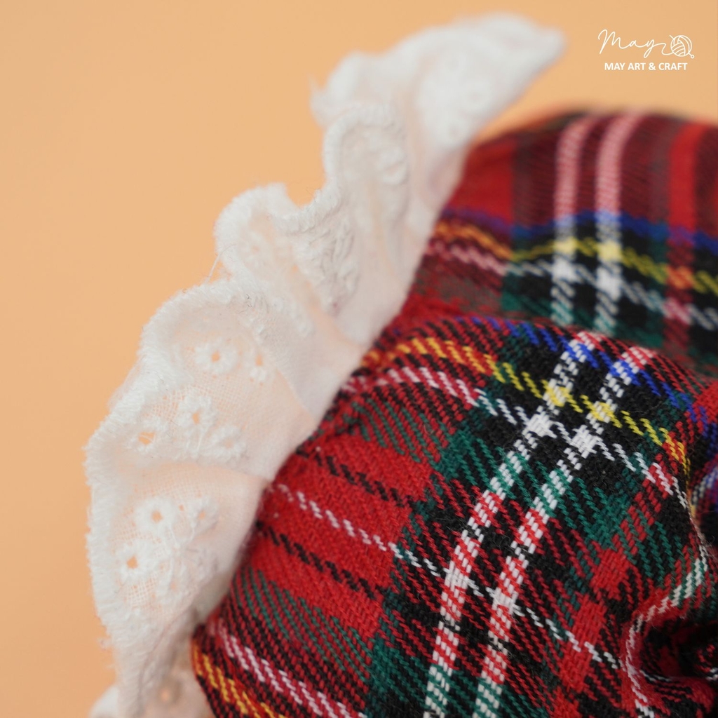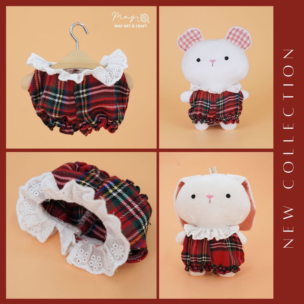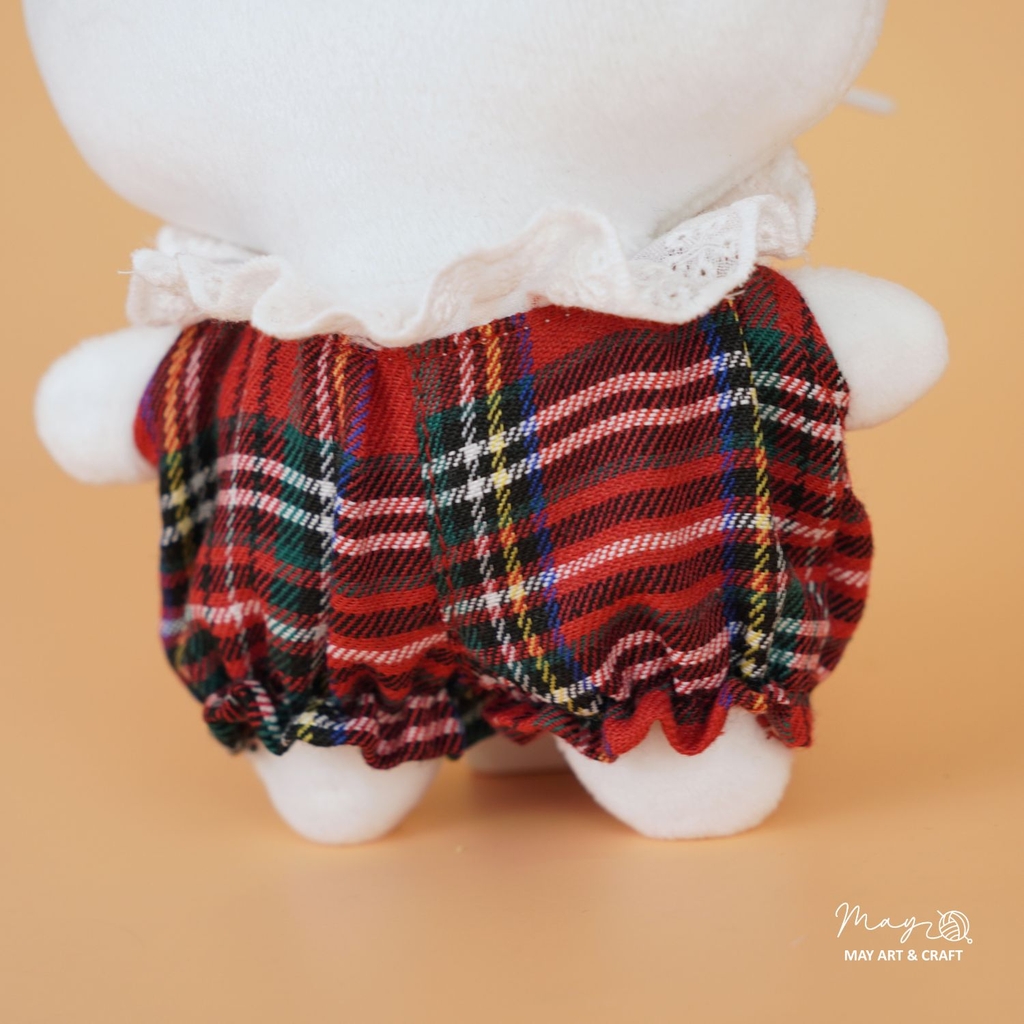 Yếm bí ngô cao cổ caro đỏ cổ điển được may đo riêng cho dòng thú bông mini của Tiệm Tạp Hoá Nhà May. Thiết kế nhỏ xinh nhưng từng chi tiết đều được chăm chút như trang phục cho người mặc